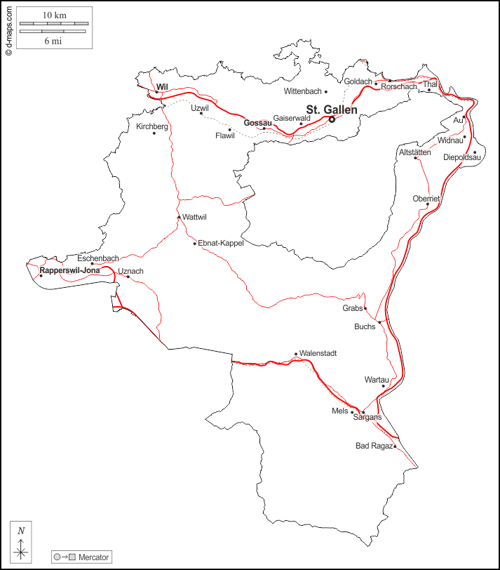 d-maps > 欧洲 > 瑞士 > 圣加仑 > 大纲, 主要城市, 道路, 名称, 白