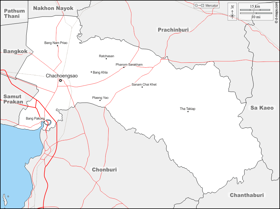 d-maps > 亚洲 > 泰国 > 差春騷府 > 边界, 主要城市, 道路, 名称