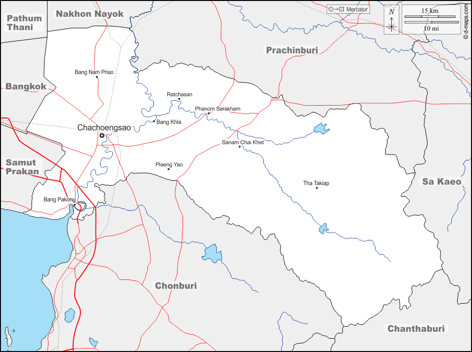d-maps > 亚洲 > 泰国 > 差春騷府 > 边界, 水文学, 主要城市, 道路, 名称