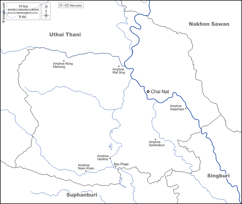 d-maps > 亚洲 > 泰国 > 猜納府 > 边界, 水文学, 主要城市, 名称, 白