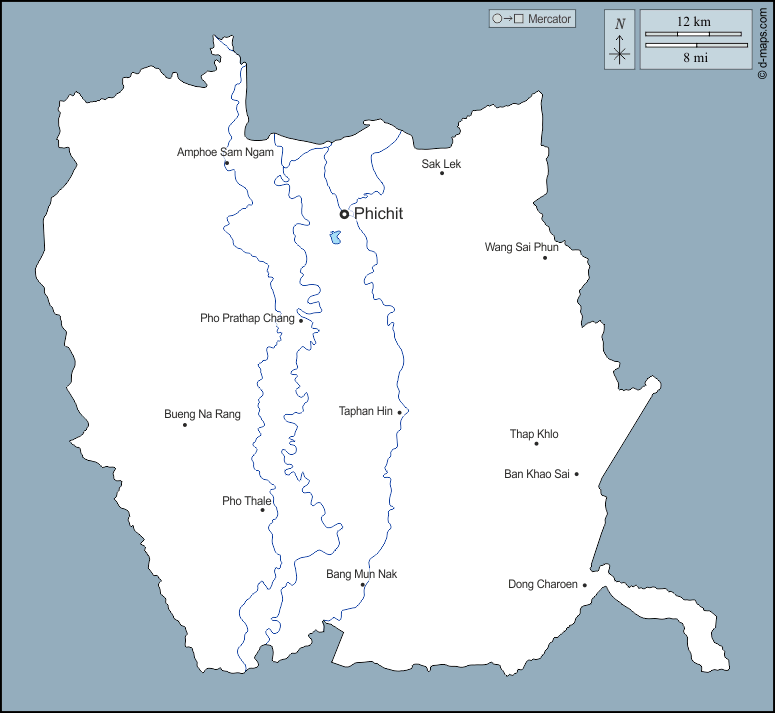 d-maps > 亚洲 > 泰国 > 披集府 > 大纲, 水文学, 主要城市, 名称