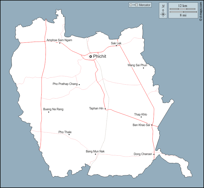 d-maps > 亚洲 > 泰国 > 披集府 > 大纲, 主要城市, 道路, 名称