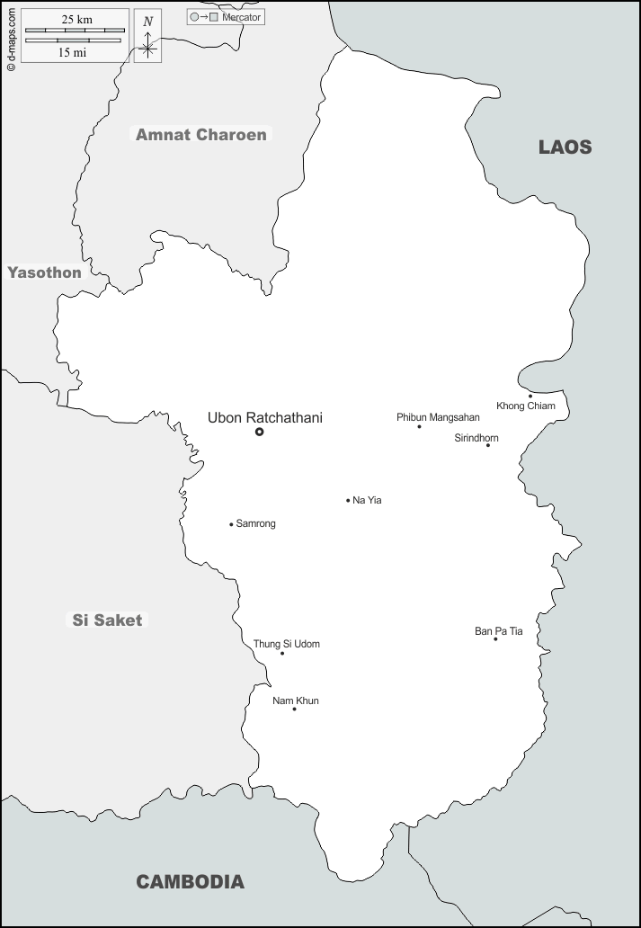 d-maps > 亚洲 > 泰国 > 烏汶府 > 边界, 主要城市, 名称