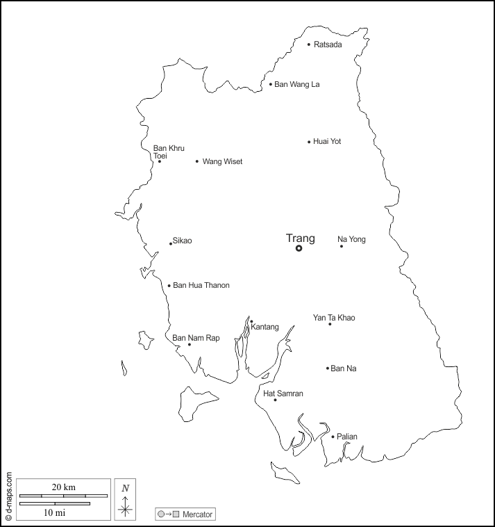 Ban Hua Thanon - Ban Khru Toei - Ban Na - Ban Nam Rap - Ban Wang La - Hat Samran - Huai Yot - Kantang - Na Yong - Palian - Ratsada - Sikao - Trang - Wang Wiset - Yan Ta Khao