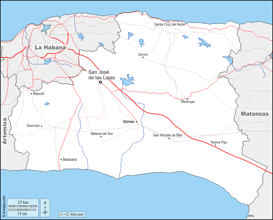 Batabanó - Bejucal - Güines - Jaruco - Madruga - Melena del Sur - Nueva Paz - Quivicán - San José de las Lajas - San Nicolás de Bari - Santa Cruz del Norte