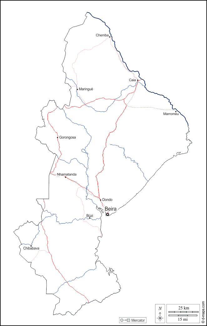 Beira - Búzi - Caia - Chemba - Chibabava - Dondo - Gorongosa - Maringué - Marromeu - Nhamatanda