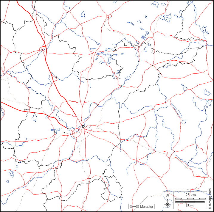d-maps > 欧洲 > 立陶宛 > 維爾紐斯縣 > 边界, 水文学, 主要城市, 道路, 白