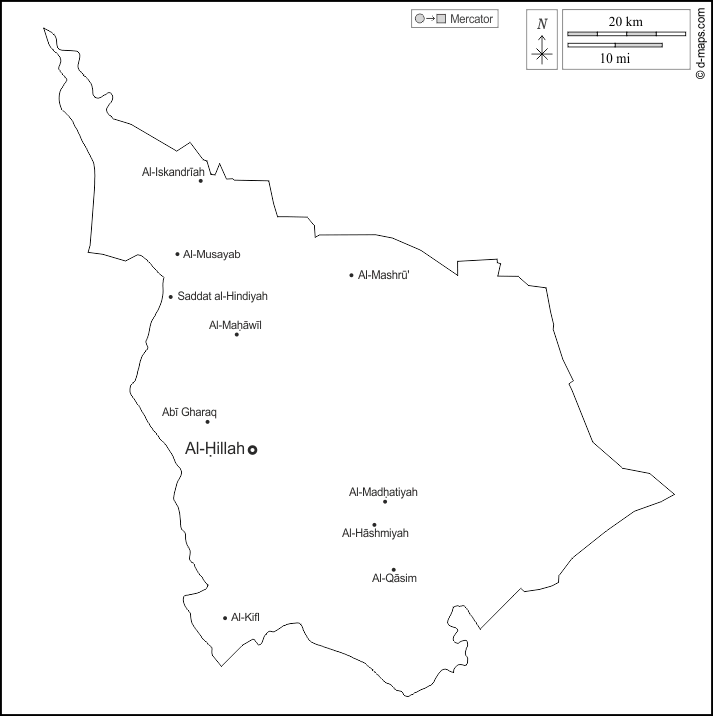 d-maps > 亚洲 > 伊拉克 > 巴比倫省 > 大纲, 主要城市, 名称, 白