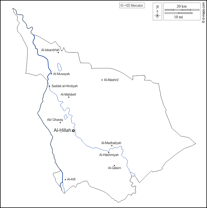 d-maps > 亚洲 > 伊拉克 > 巴比倫省 > 大纲, 水文学, 主要城市, 名称, 白
