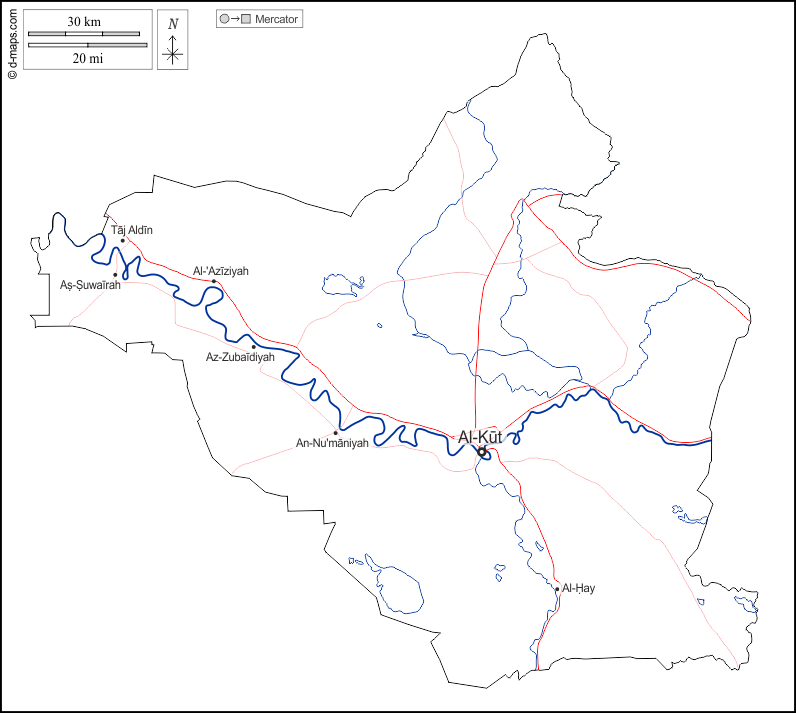 Al-'Aziziyah - Al-Hay - Al-Kut - An-Nu'maniyah - As-Suwairah - Az-Zubaidiyah - Taj Aldin