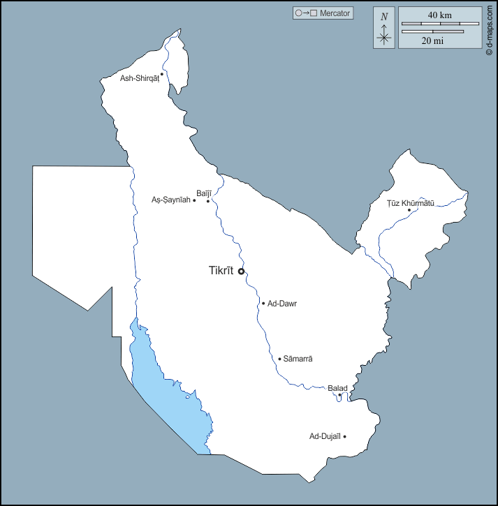 d-maps > 亚洲 > 伊拉克 > 萨拉赫丁省 > 大纲, 水文学, 主要城市, 名称