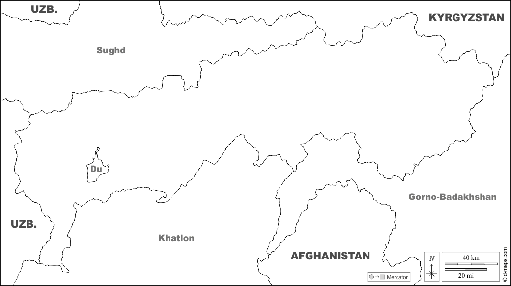 d-maps > 亚洲 > 塔吉克斯坦 > 共和國直轄區 > 边界, 名称, 白