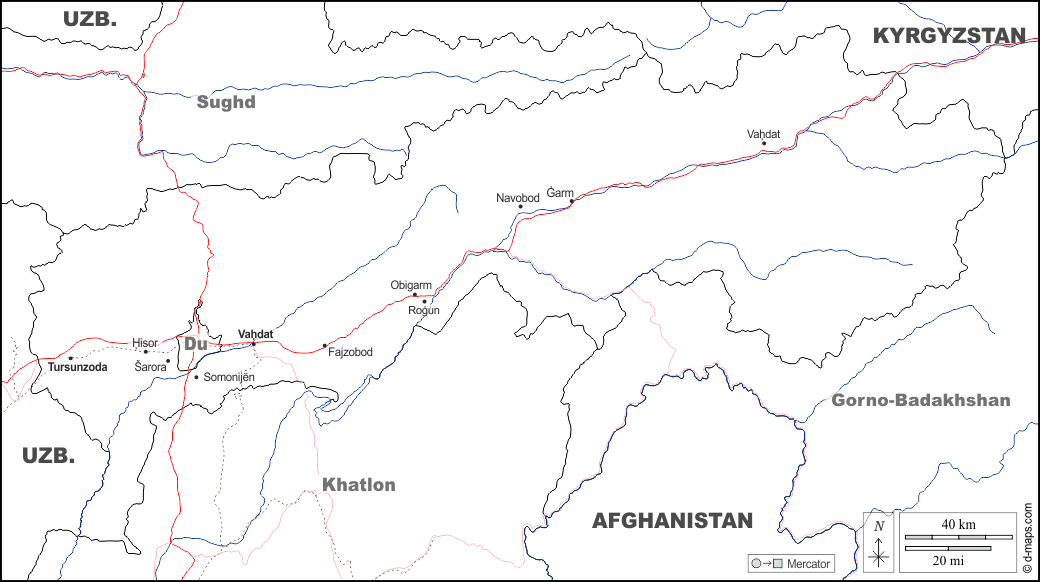 Fajzobod - Garm - Hisor - Navobod - Obigarm - Rogun - Sarora - Somonijën - Tursunzoda - Vahdat - Vahdat