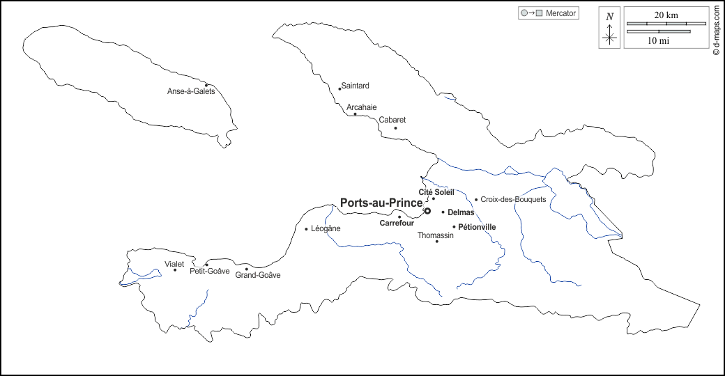 d-maps > 美洲 > 海地 > 西部省 > 大纲, 水文学, 主要城市, 名称, 白