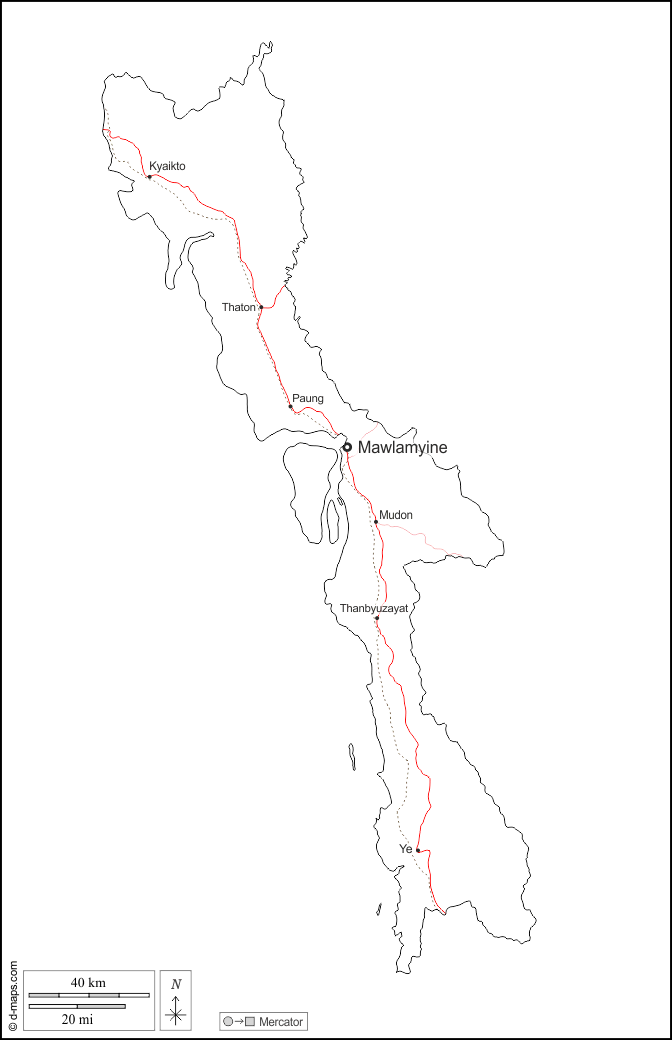 Kyaikto - Mawlamyine - Mudon - Paung - Thanbyuzayat - Thaton - Ye