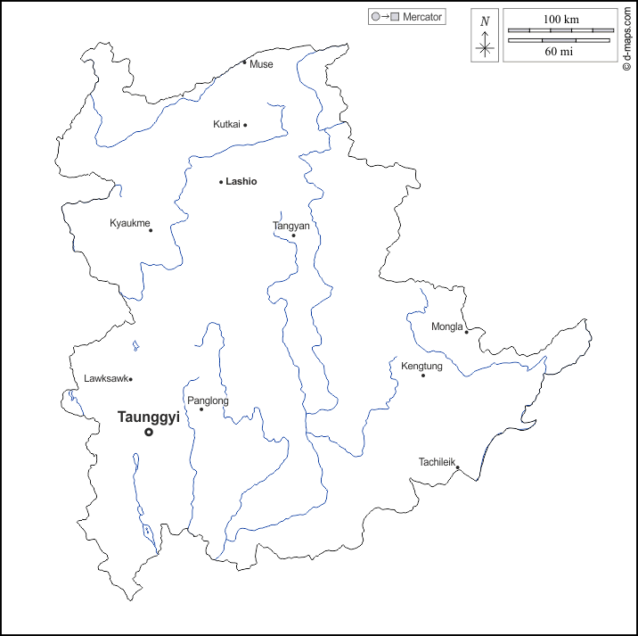 d-maps > 亚洲 > 缅甸缅甸 > 掸邦 > 大纲, 水文学, 主要城市, 名称, 白
