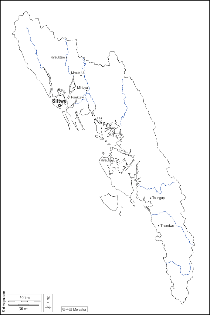 Kyaukpyu - Kyauktaw - Minbya - Mrauk-U - Pauktaw - Sittwe - Thandwe - Toungup