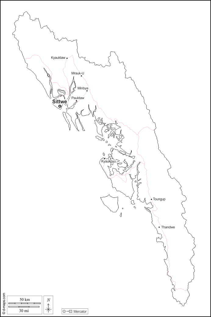 Kyaukpyu - Kyauktaw - Minbya - Mrauk-U - Pauktaw - Sittwe - Thandwe - Toungup