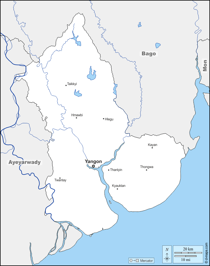 Hlegu - Hmawbi - Kayan - Kyauktan - Taikkyi - Thanlyin - Thongwa - Twantay - Yangon