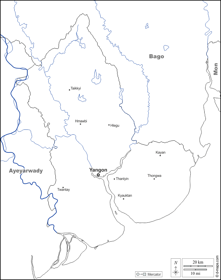 Hlegu - Hmawbi - Kayan - Kyauktan - Taikkyi - Thanlyin - Thongwa - Twantay - Yangon