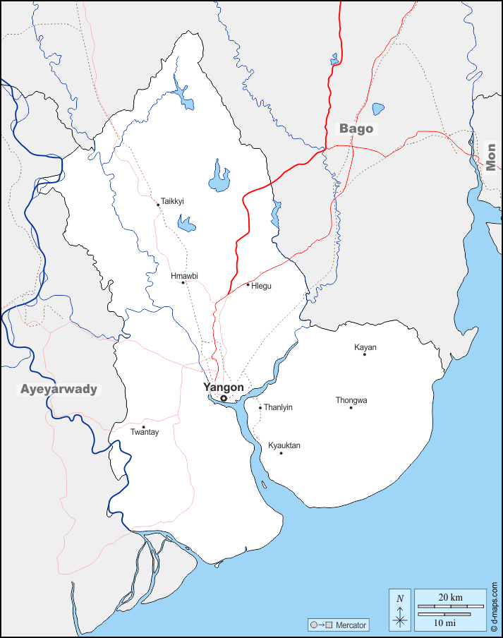 Hlegu - Hmawbi - Kayan - Kyauktan - Taikkyi - Thanlyin - Thongwa - Twantay - Yangon