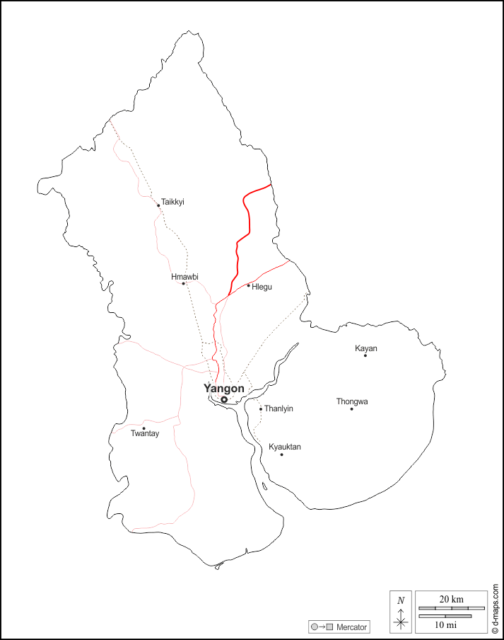Hlegu - Hmawbi - Kayan - Kyauktan - Taikkyi - Thanlyin - Thongwa - Twantay - Yangon