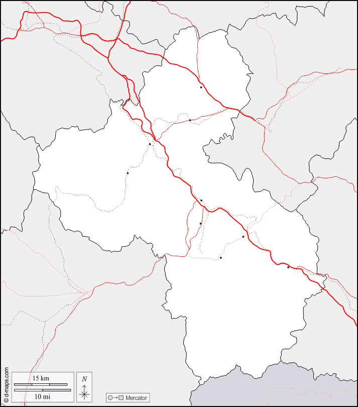 d-maps > 欧洲 > 北馬其頓 > 瓦尔达尔统计区 > 边界, 主要城市, 道路