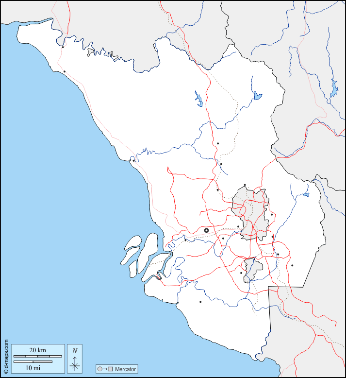 d-maps > 亚洲 > 马来西亚 > 雪蘭莪 > 边界, 水文学, 主要城市, 道路