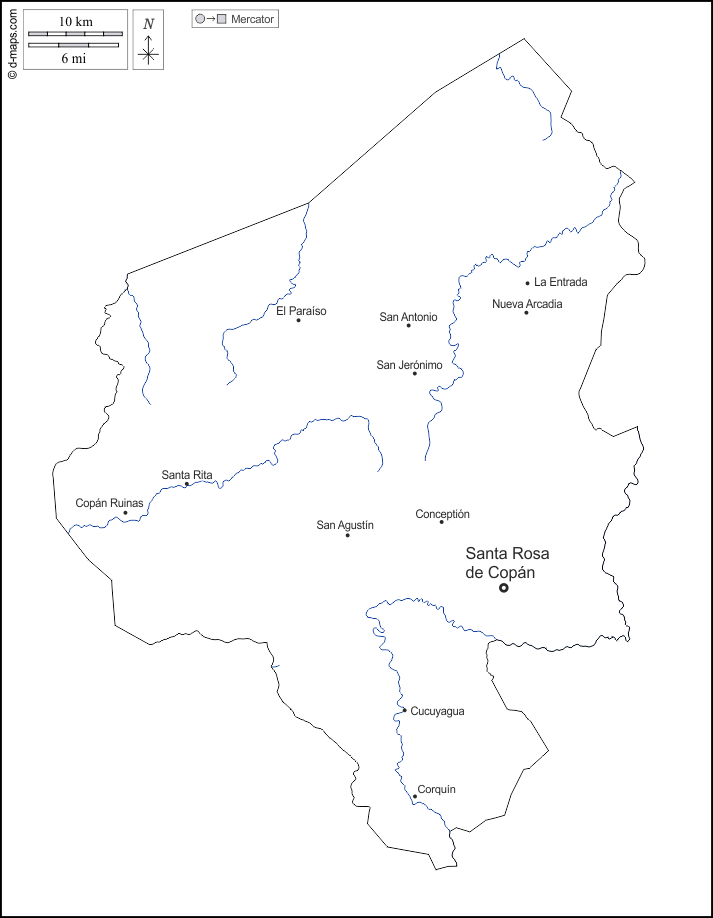 d-maps > 美洲 > 洪都拉斯 > 科潘省 > 大纲, 水文学, 主要城市, 名称, 白