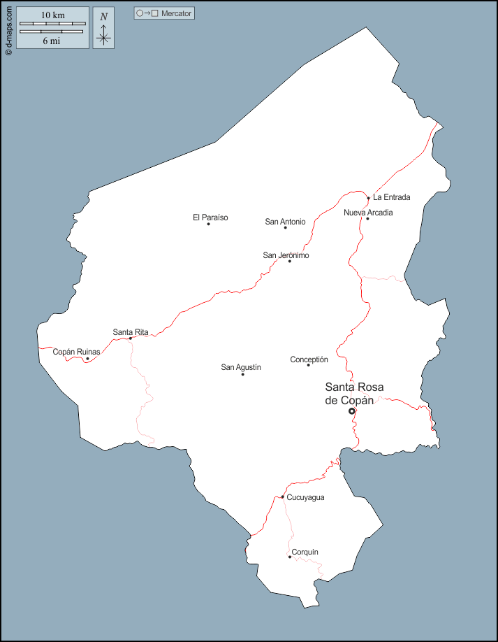 d-maps > 美洲 > 洪都拉斯 > 科潘省 > 大纲, 主要城市, 道路, 名称