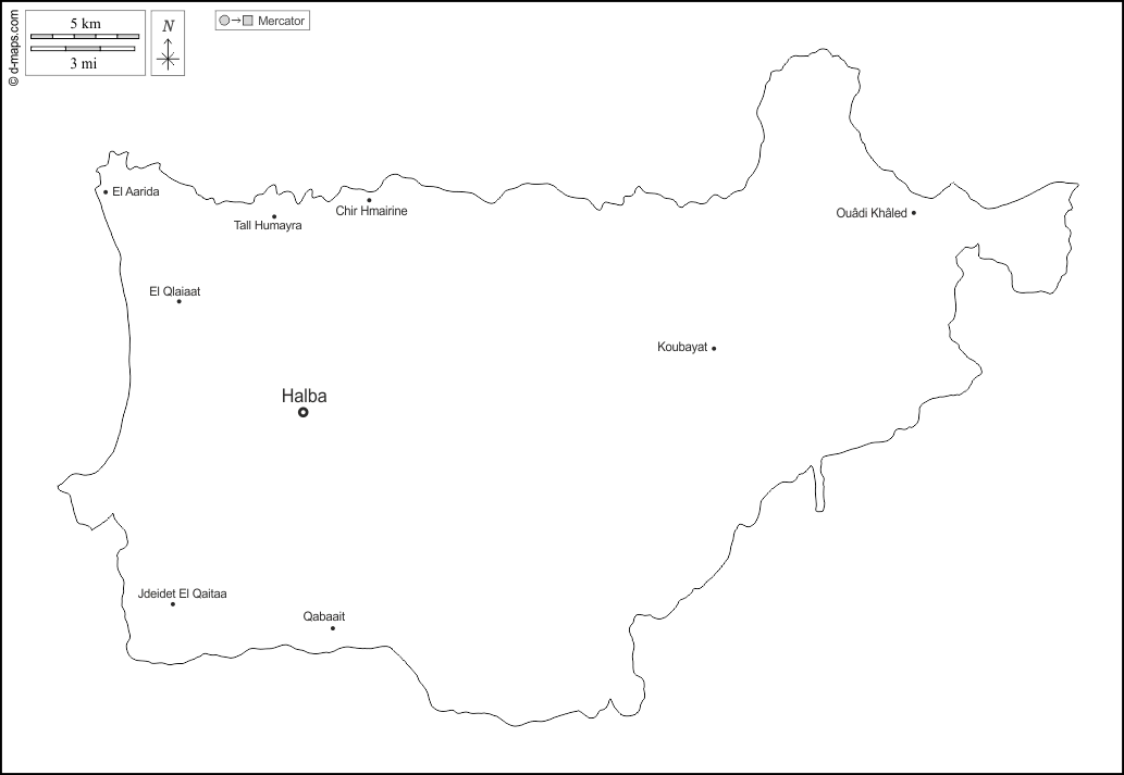 d-maps > 亚洲 > 黎巴嫩 > 阿卡尔省 > 大纲, 主要城市, 名称, 白