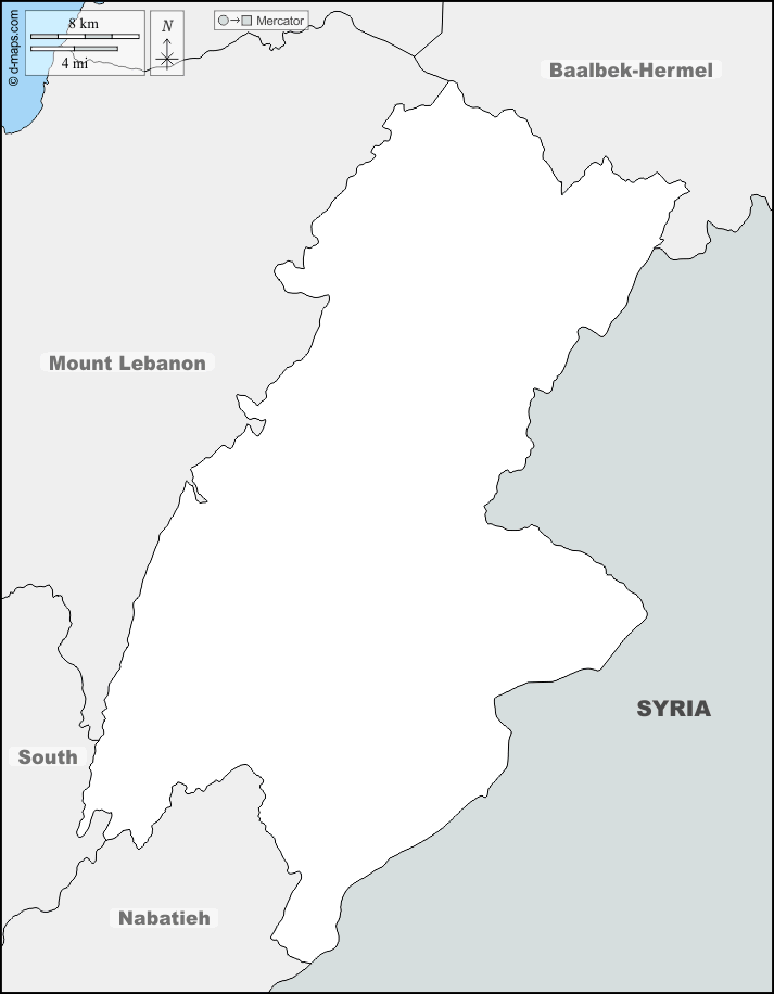 Anjar - Baaloul - Bar Elias - Fourzol - Joub Jannine - Kfar Zabad - Qaraoun - Rashaya - Saadnayel - Zahlé