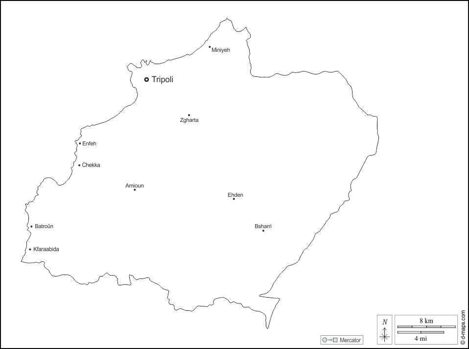 Amioun - Batroûn - Bsharri - Chekka - Ehden - Enfeh - Kfaraabida - Miniyeh - Tripoli - Zgharta
