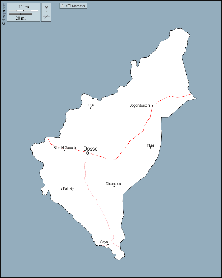 Birni N Gaouré - Dioundiou - Dogondoutchi - Dosso - Falmèy - Gaya - Loga - Tibiri