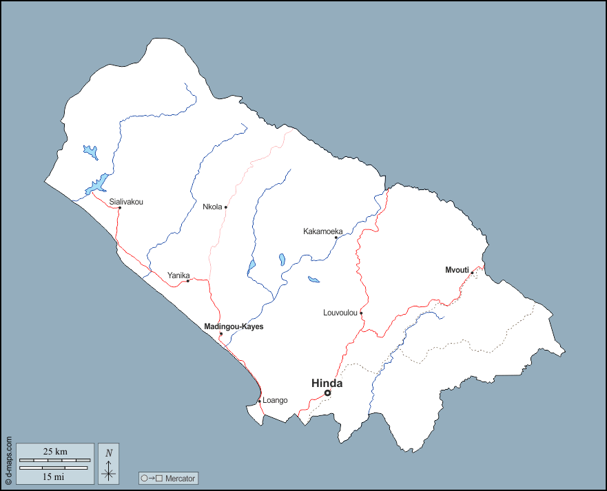 Hinda - Kakamoeka - Loango - Louvoulou - Madingou-Kayes - Mvouti - Nkola - Sialivakou - Yanika
