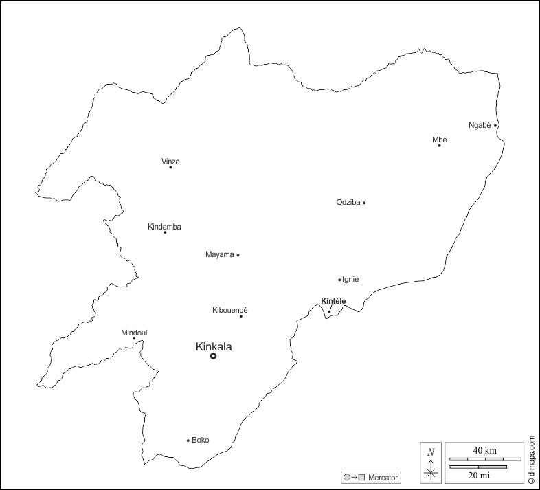 Boko - Ignié - Kibouendé - Kindamba - Kinkala - Kintélé - Mayama - Mbé - Mindouli - Ngabé - Odziba - Vinza