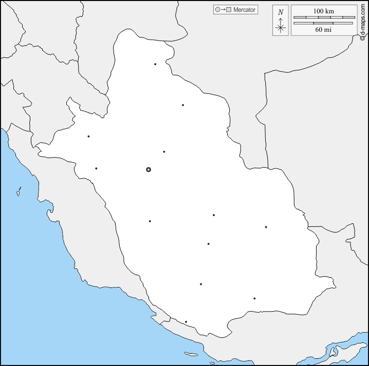 d-maps > 亚洲 > 伊朗 > 法爾斯省 > 边界, 主要城市