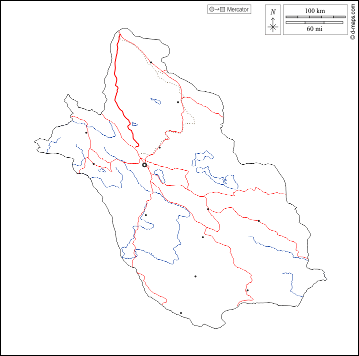 d-maps > 亚洲 > 伊朗 > 法爾斯省 > 大纲, 水文学, 主要城市, 道路, 白