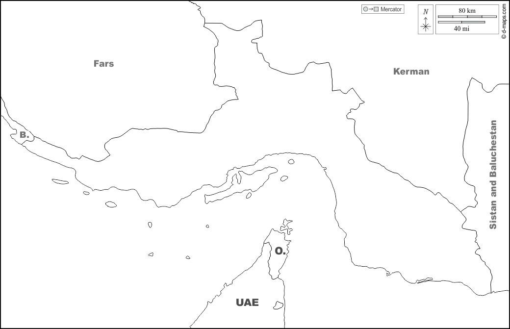 d-maps > 亚洲 > 伊朗 > 霍爾木茲甘省 > 边界, 名称, 白