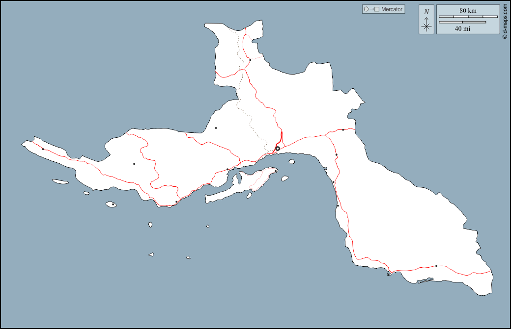d-maps > 亚洲 > 伊朗 > 霍爾木茲甘省 > 大纲, 主要城市, 道路