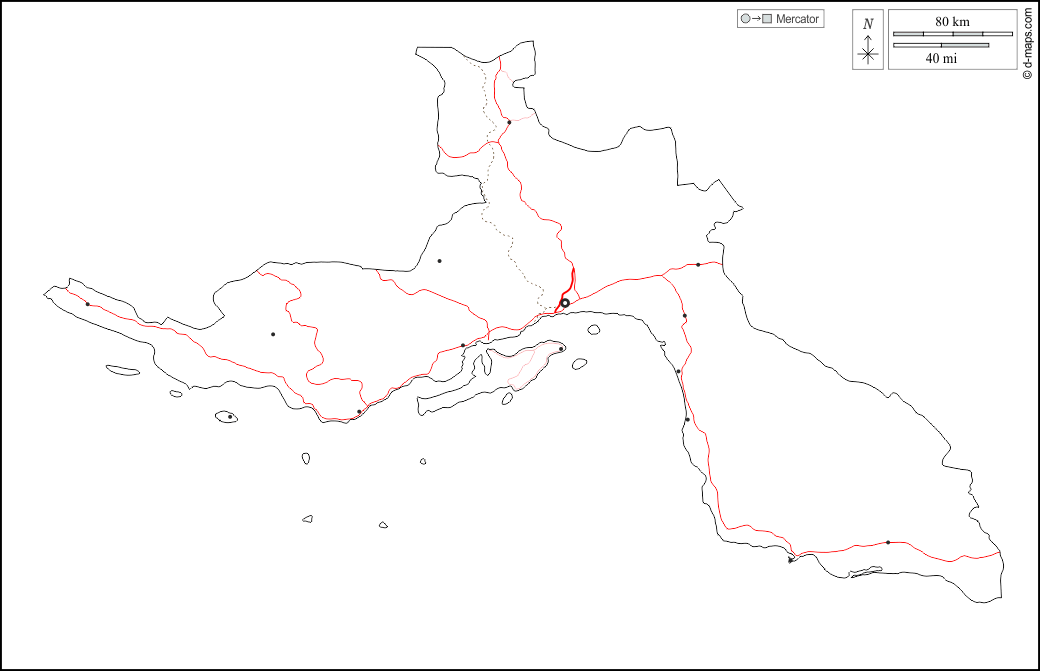 d-maps > 亚洲 > 伊朗 > 霍爾木茲甘省 > 大纲, 主要城市, 道路, 白
