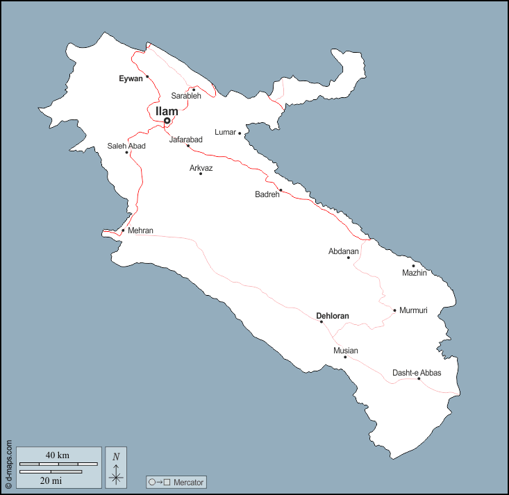 d-maps > 亚洲 > 伊朗 > 伊拉姆省 > 大纲, 主要城市, 道路, 名称