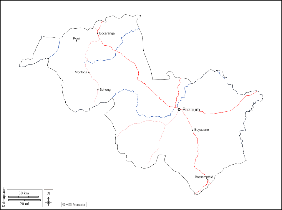 Bocaranga - Bohong - Bossemptélé - Boyabane - Bozoum - Koui - Mbotoga