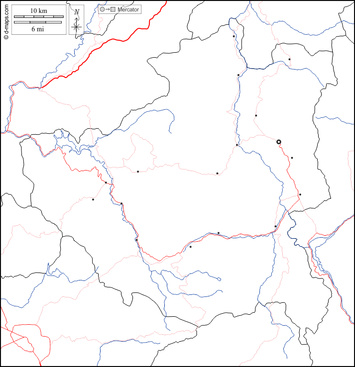 d-maps > 欧洲 > 阿尔巴尼亚 > 第巴爾州 > 边界, 水文学, 主要城市, 道路, 白