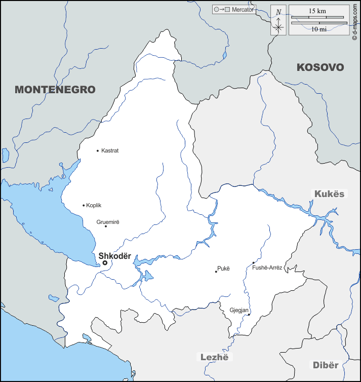 Fushë-Arrëz - Gjegjan - Gruemirë - Kastrat - Koplik - Pukë - Shkodër
