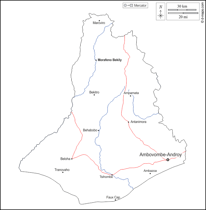 d-maps > 非洲 > 马达加斯加 > 安德鲁伊大区 > 大纲, 水文学, 主要城市, 道路, 名称, 白