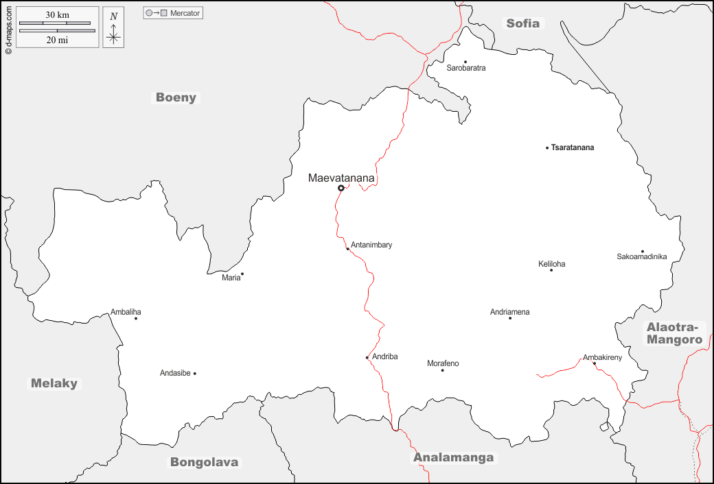 d-maps > 非洲 > 马达加斯加 > 贝齐布卡大区 > 边界, 主要城市, 道路, 名称