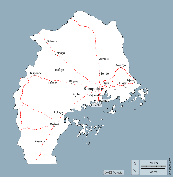 d-maps > 非洲 > 乌干达 > 中部區 > 大纲, 主要城市, 道路, 名称