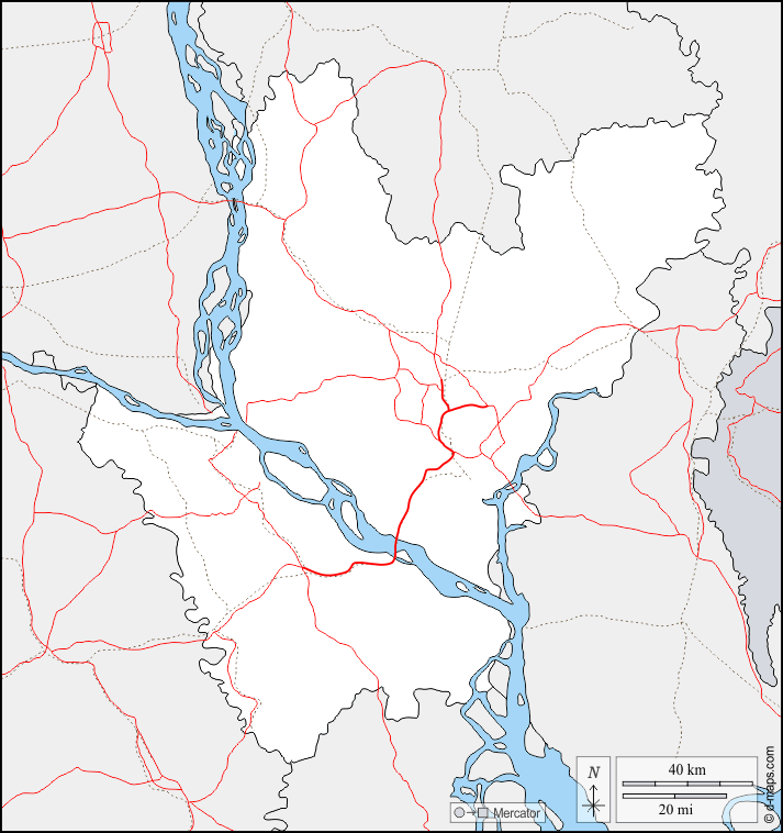 d-maps > 亚洲 > 孟加拉国 > 達卡專區 > 边界, 道路