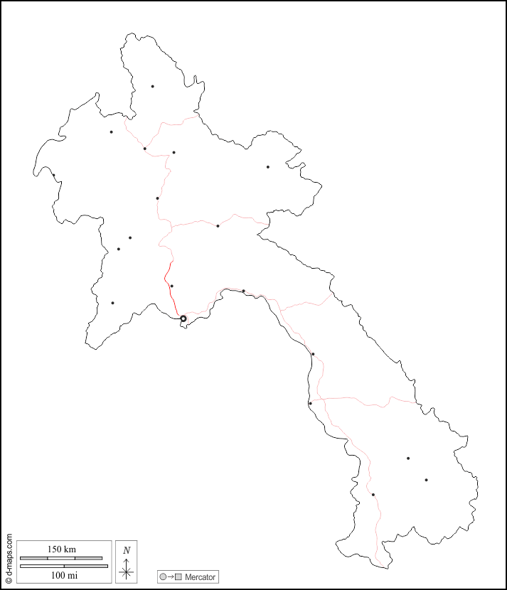 d-maps > 亚洲 > 老挝 > 大纲, 主要城市, 道路, 白